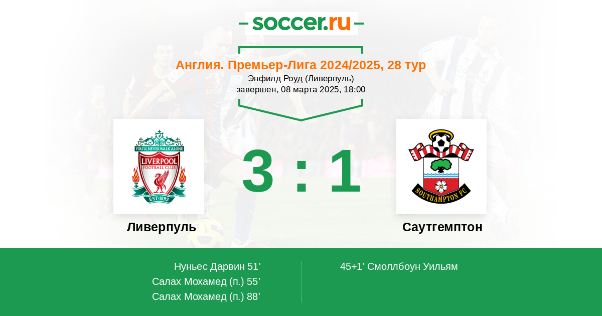 Саутгемптон уже не старается и просто доигрывает сезон, стабильно получая по три-четыре мяча в свои ворота. Легкая прогулка для чемпиона