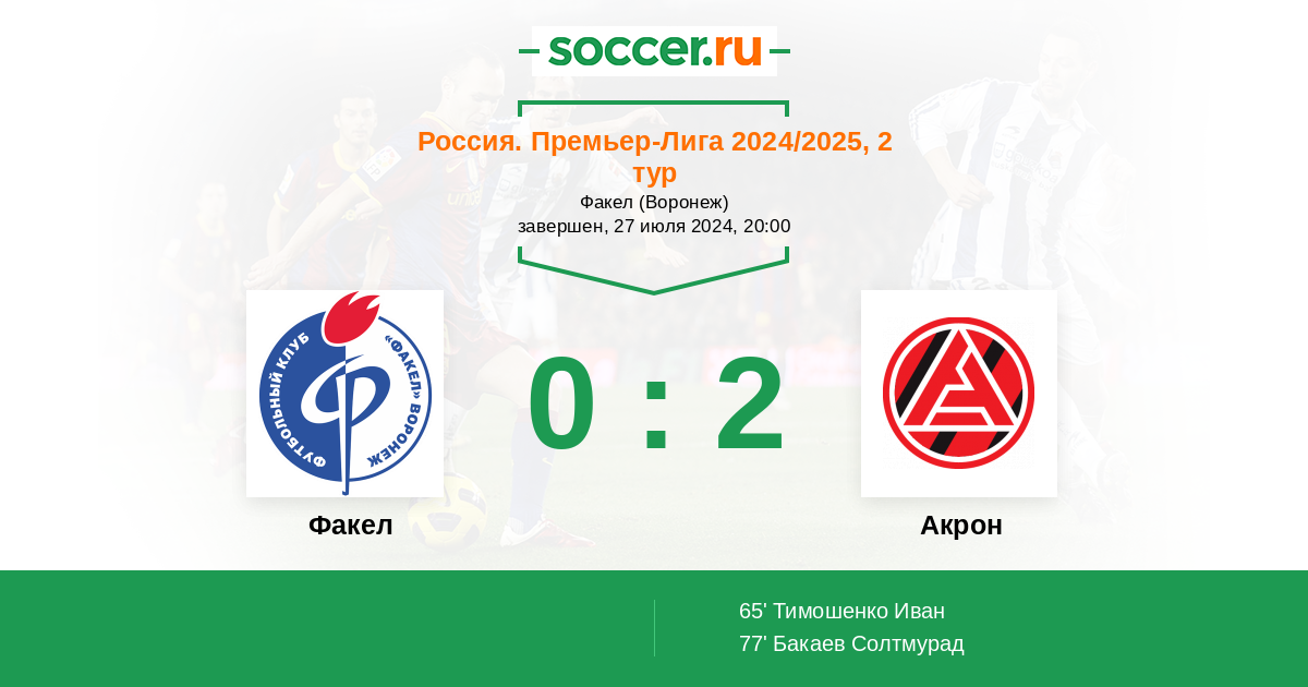 На мой взгляд, даже при игре 11 на 11 Акрон на поле лучше смотрелся: был мобильнее, агрессивнее, более заряжен на гол.