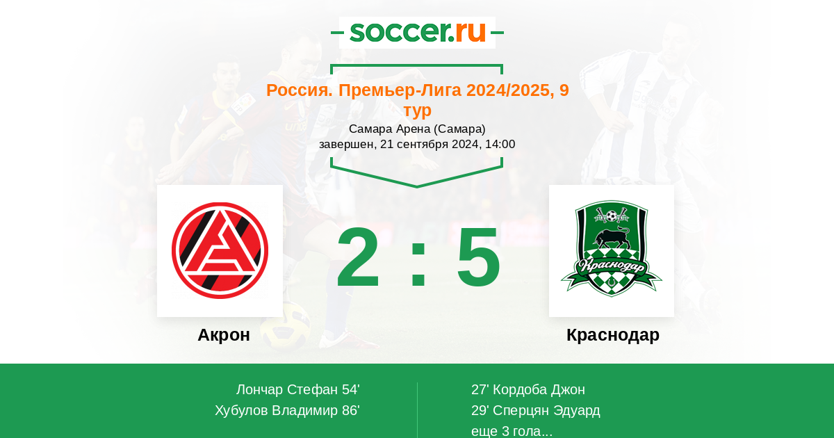 Акрон уж очень не аккуратно сыграл в своей зоне. Столько ошибок приведших к пропуску голов, что хватило бы на несколько матчей. Ну а Краснодар грамотно воспользовался предоставленными подарками.
