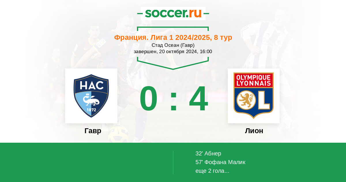 Гостевая команда в выездном матче с Гавром выглядит фаворитом, имеет заметно больше шансов на победу и хотя бы один гол, забитый Лионом после перерыва, зрители в завтрашней игре наверняка смогут увидеть