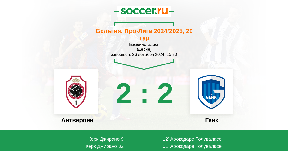 Предположу результативную ничью. Антверпен дома играет хорошо и сможет противостоять Генку, который на выезде играет не так результативно, как дома.