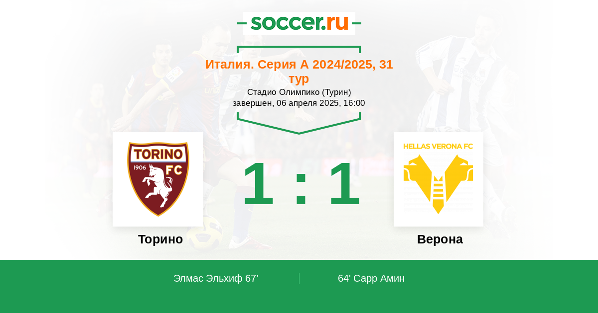 В матче тридцать первого тура итальянской Серии А между клубами Торино и Верона только в последних двух играх голов больше чем два, а до этого любимый счёт между ними был 1:1, рискованная ставка на повторение любимого результат