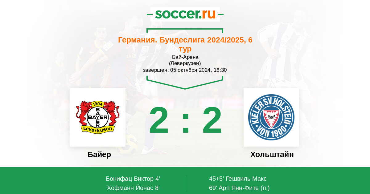 Байер - Хольштайн ! Ну ни как нельзя " фармацевтам " тормозить в этом матче с аутсайдером , а то остальные лидеры могут и уйти вперёд . Надеюсь начнут без раскачки .