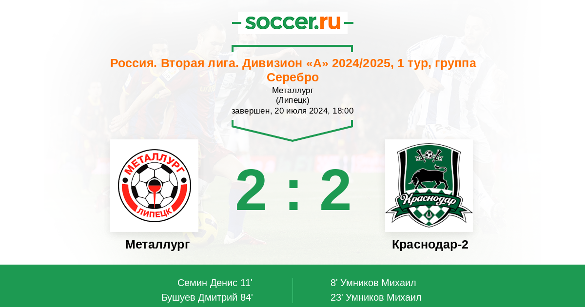 Матчи Россия. Вторая лига. Дивизион «А» 2024/2025