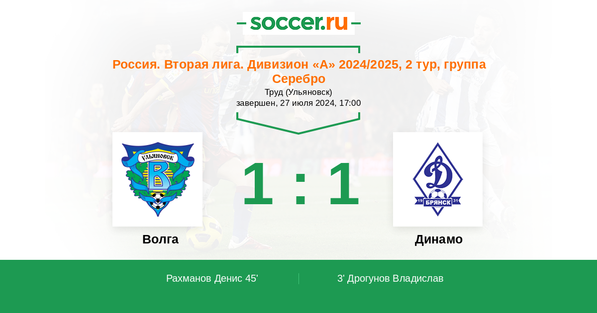 Матчи Россия. Вторая лига. Дивизион «А» 2024/2025