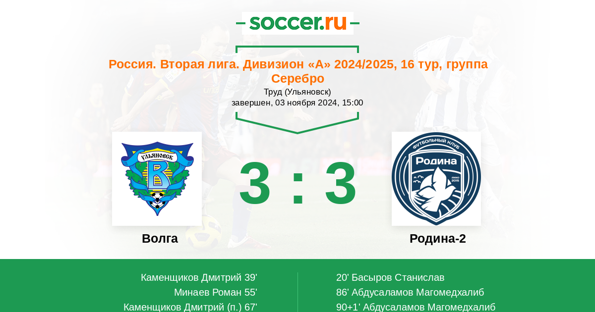 Матчи Россия. Вторая лига. Дивизион «А» 2024/2025