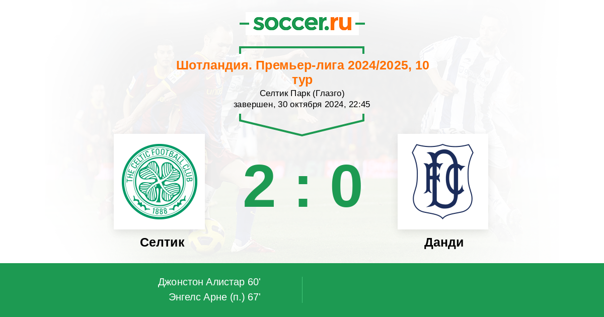 у Данди в последнее время расклеилась игра. Команда то и дело проигрывает. В четырех из пяти предыдущих матчей терпел неудачу. Селтик пока очки потерял только в одной встрече. В остальных восьми поединках чемпионата неизбежно выигрывал, а в пяти из них доводил дело до разгрома.