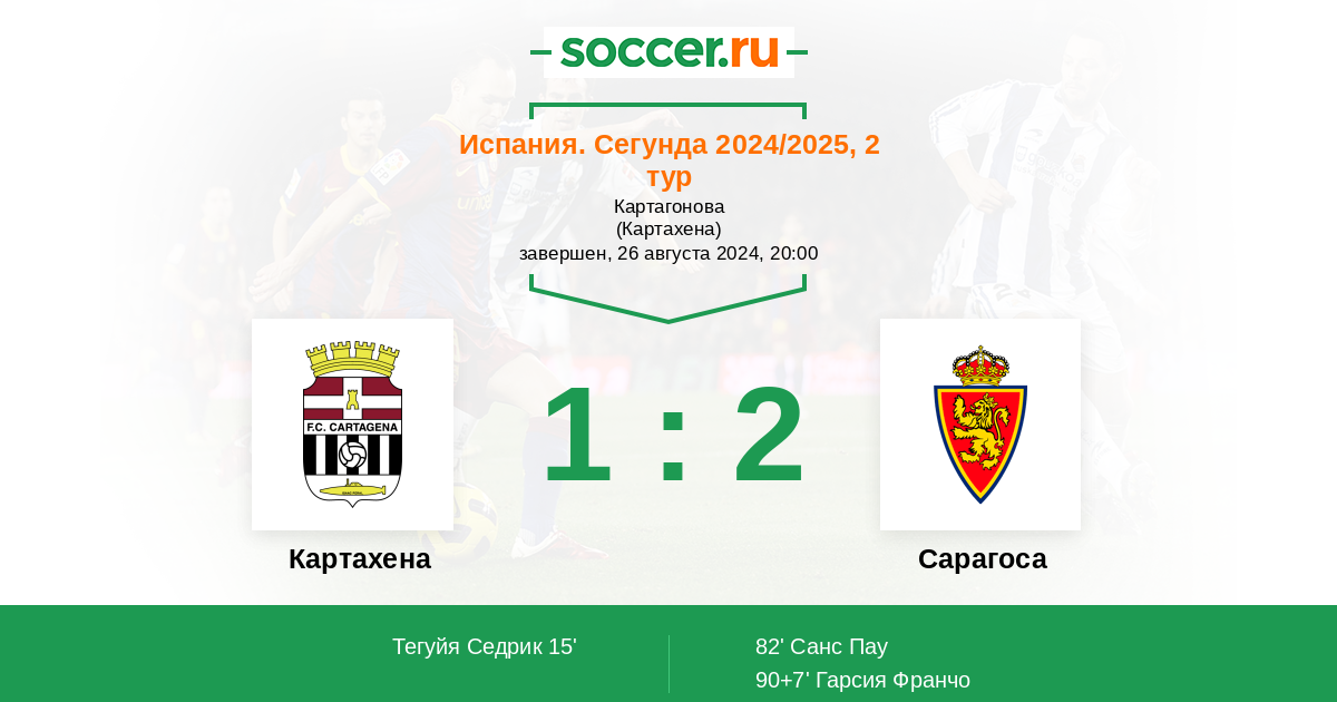 Картахена - Сарагоса ! Команды только , только стартовали и провели только по одному матчу - выводы делать рано , но бурный старт гостей позволяет надеяться , что они , по крайней мере забьют , и в этом матче тоже .