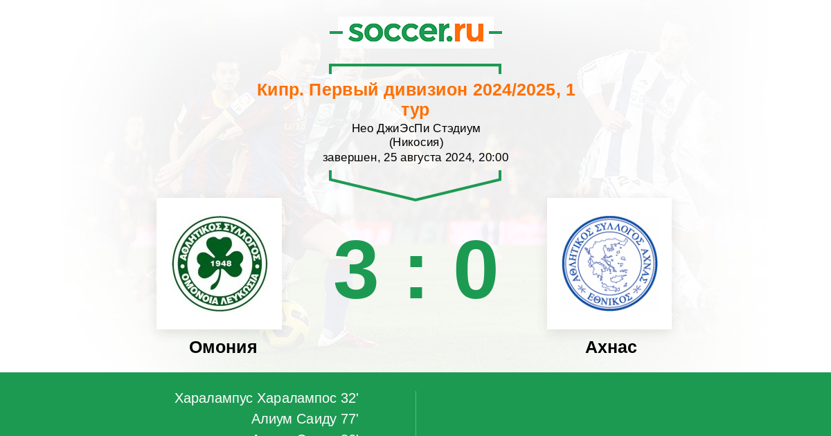 Матчи Кипр. Первый дивизион 2024/2025