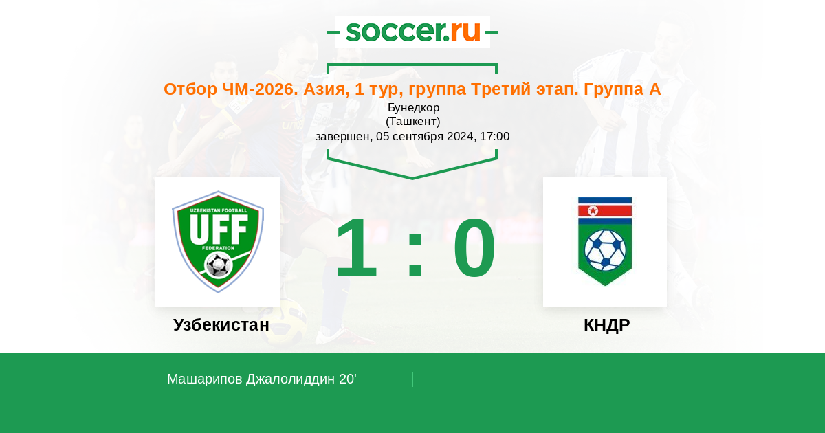 Узбекская команда за последние годы заработала себе весьма крепкую по азиатским меркам репутацию, всегда смотрится очень достойно даже против грандов своего региона и должна на классе обыгрывать своих северокорейских оппонентов, которым точно не позволит забить несколько мячей