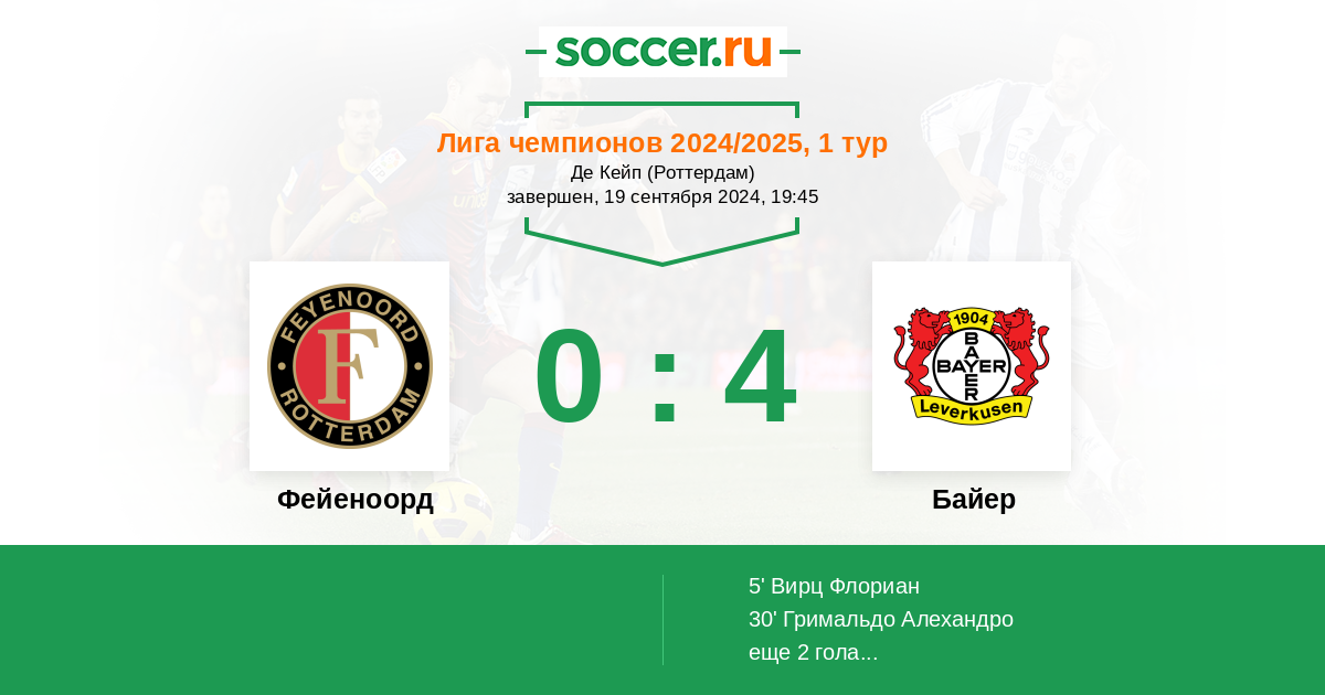Чемпион Германии в гостевом матче с заметно уступающим ему в классе и опыте игроков Фейеноордом вряд ли столкнётся с какими-то проблемами, наверняка одержит уверенную победу и точно не даст хозяевам забить пять голов