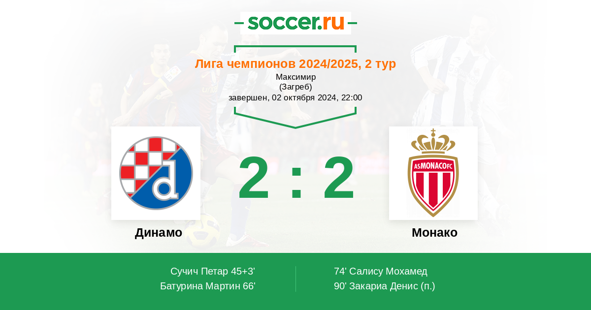 Динамо - Монако ! Монако в этом матче " идёт капитальным фаворитом ", но честно говоря их игра пока не очень то впечатляет . Что же касается хозяев , то им после разгрома в прошлом туре надо хотя бы забить .