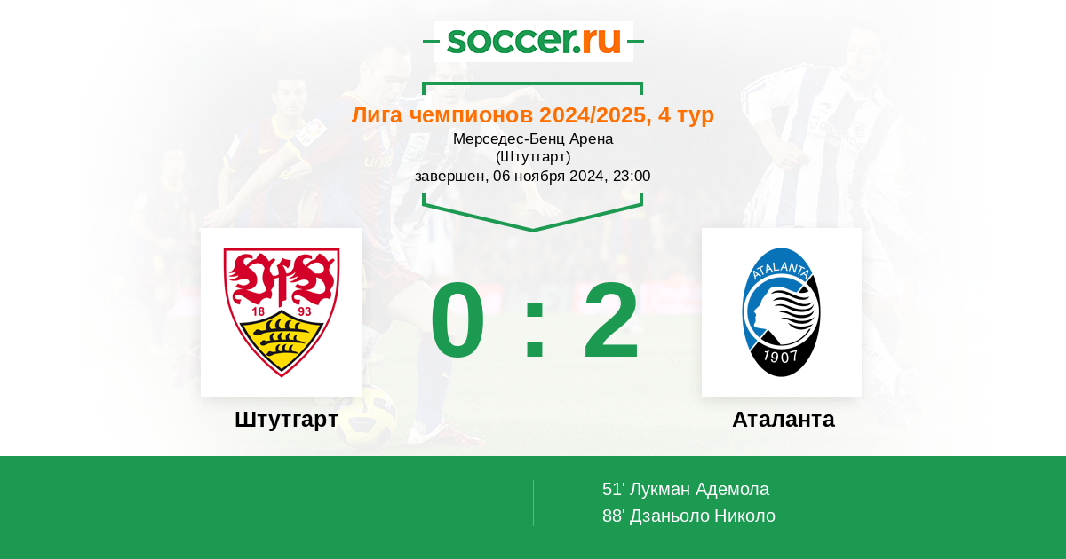 Очень любопытная игра. Штутгарт не тот, что в прошлом сезоне, уход Гирасси ослабил атаку команды. В недавней игре против Байера команда чудом спаслась. А вот Аталанта, смотрится, более чем солидно!!!