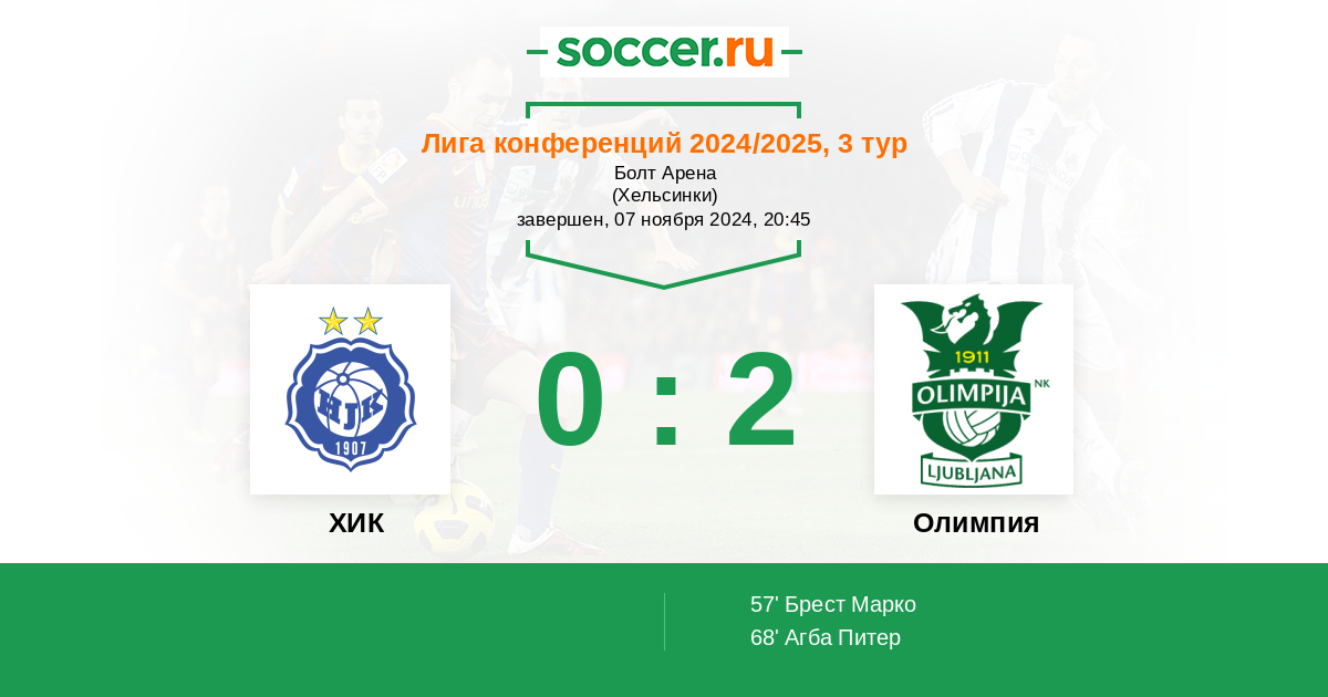 Драконы являются безоговорочным лидером Словении. За 14 туров они пропустили всего пять мячей, что говорит о надежной и дисциплинированной игре в обороне. В первом матче Лиги конференций они потерпели поражение от Хайденхайма, не сумев удержать ничью и в конце пропустив гол. Во второй игре Олимпия без проблем расправилась с ЛАСКом со счетом 2:0. Коллектив набрал отличный ход и за пять последних матчей пропустил всего один мяч, забив при этом девять.