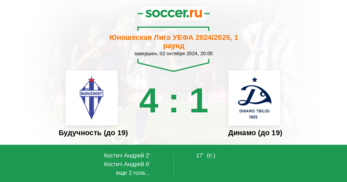 Матчи Юношеская Лига УЕФА 2024/2025