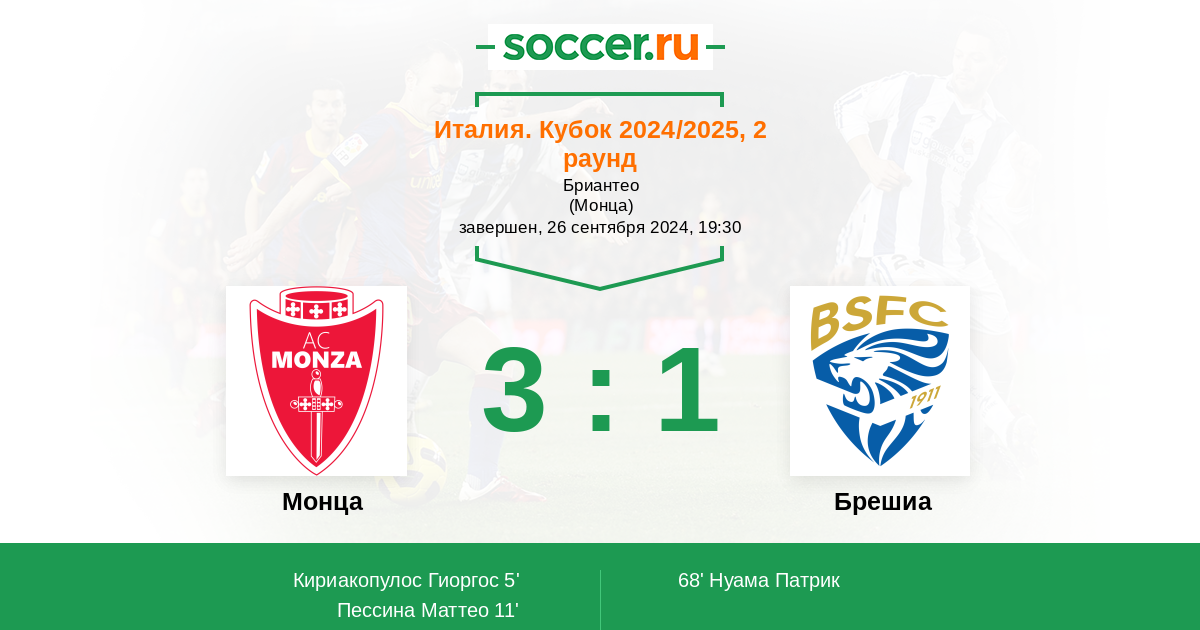 Монца просто гораздо сильнее Брешии... И по составу, и по игре. Правда есть одно но - хозяева, скорее всего, выставят не самый самый сильный состав. Но гости проиграют и им. Счёт 2:1