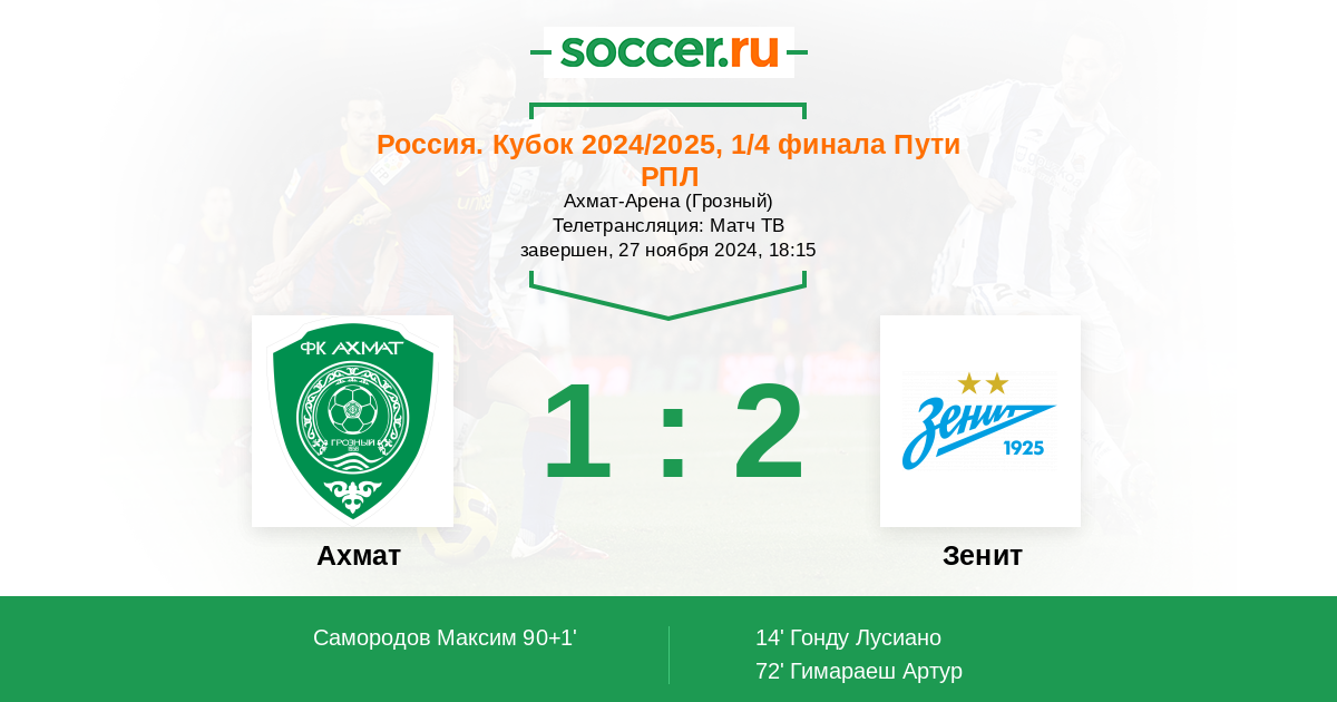 Ахмат - Зенит ! Первый матч расставил всё по местам и возможно будет ротация состава . Хозяевам волей , не волей придётся атаковать и при этом открываться , гости этим смог воспользоваться .