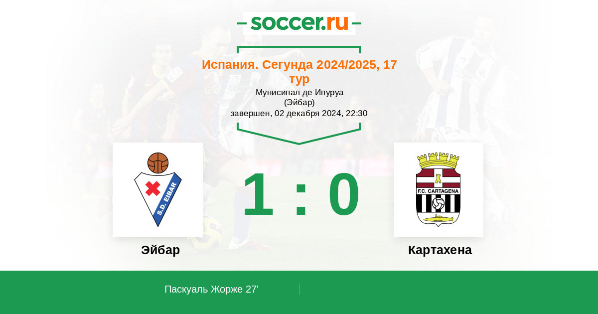 У "Картахены" же полный провал - команда пропускает почти два мяча за игру на выезде. Отсутствие сразу трех защитников основы только усугубляет ситуацию. При этом в атаке дела идут не лучше - всего 12 забитых мячей в 16 матчах, это второй худший показатель в Сегунде.