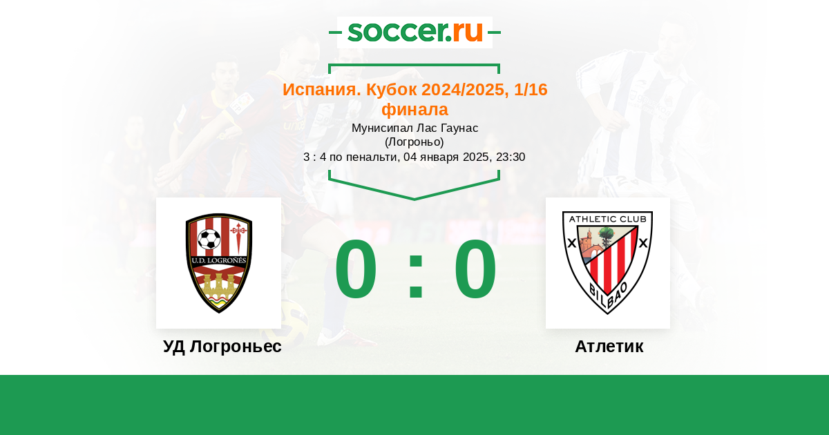 УД Логроньес - Атлетик ! Конечно бесспорный фаворит в этом кубковом матче гости , но не известно какой они выставят по силе состав и уж больно хорошо держат оборону хозяева поля . Рискну на ТМ .
