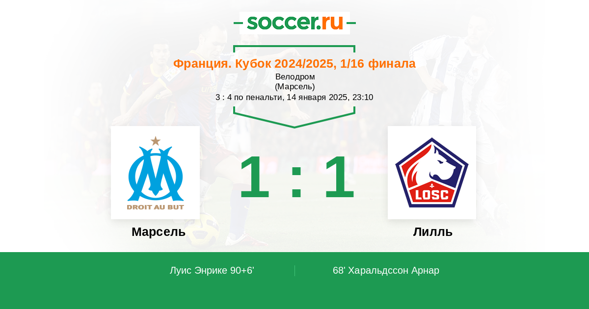 В предстоящем матче 1/16 финала Кубка Франции между командами Олимпик Марсель и Лилль , моим фаворитом на победу является команда хозяев Олимпик Марсель , так как они играют у себя дома.