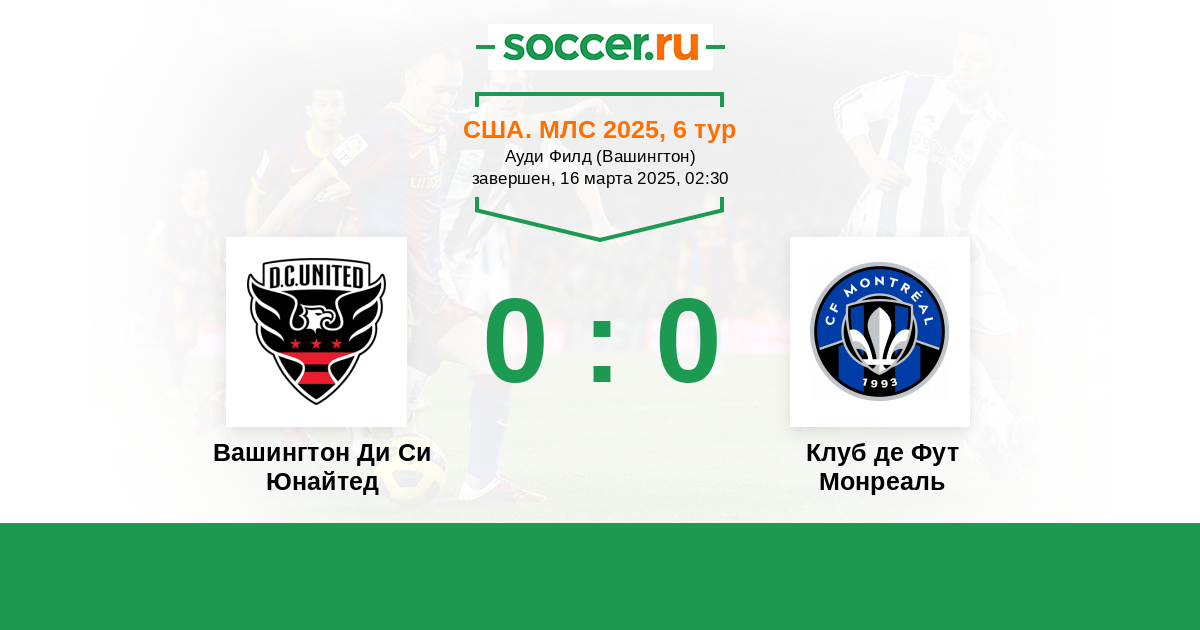 Вашингтон Ди Си Юнайтед - Клуб де Фут Монреаль ! Если хозяева уверенно держатся в лидирующей группе , то гостям надо уходить с последнего места , а то так можно и привыкнуть постепенно . )