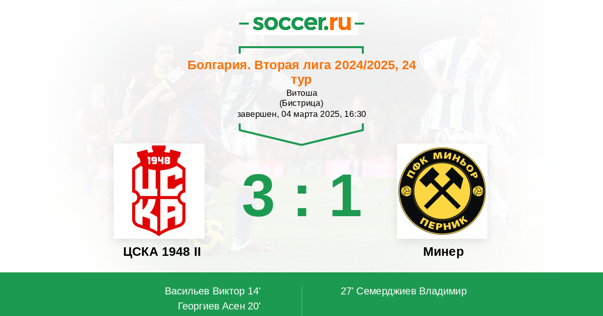 Матчи Болгария. Вторая лига 2024/2025
