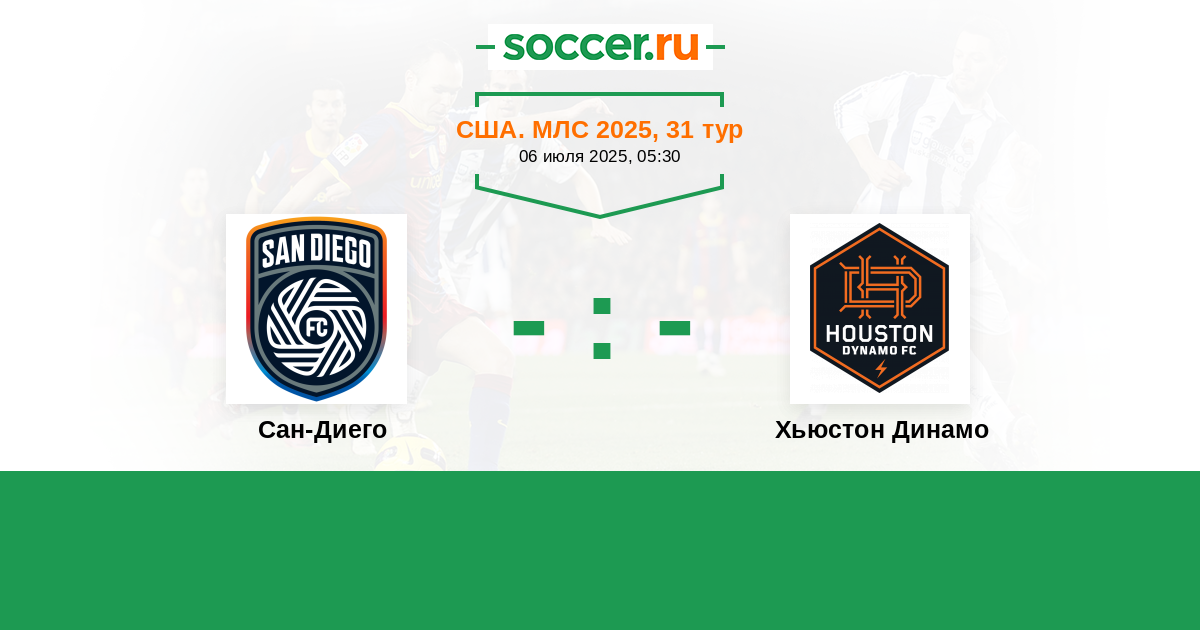 Сан - Диего - Хьюстон Динамо ! Хозяева фавориты матча находятся на лидирующих позициях в чемпионате много забивают но и достаточно пропускают . Гости которые желают попасть хотя бы в переходные игры по итогу , тоже способны забить . ТБ .