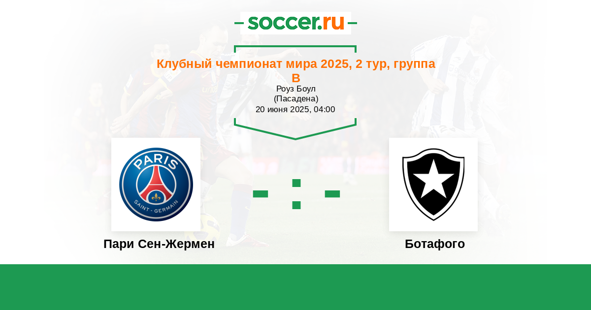 У "Ботафого" на эту игру один план - не дать разыграться "ПСЖ". В целом, "Ботафого" играют очень крепко в обороне и пробить их оборону "парижанам" будет крайне тяжело. Безусловно, "ПСЖ" - фаворит на этот матч, но легкой прогулки против неуступчивых бразильцев у них не будет.