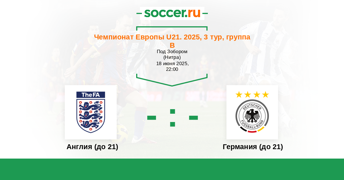 Англия ( до 21 ) - Германия ( до 21 ) ! Играют лидеры группы и вроде как для достижения итогового результата в группе немцам можно сильно не напрягаться задачу решили , но играет амбициозная молодёжь , которая поймала свою игру и много забивает.