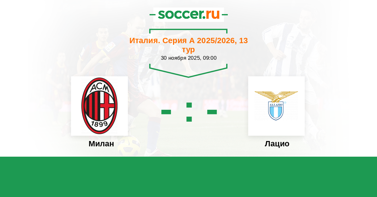 В предстоящем матче 13 - го тура итальянской Серии А между командами Милан и Лацио Рим , моим фаворитом на победу является команда хозяев Милан , так как они играют в Милане