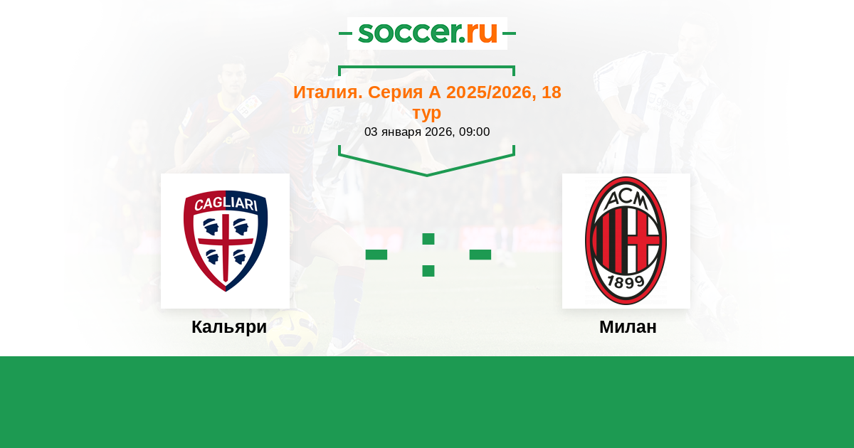 Милан набрал хороший ход... Мало того, мне кажется, что россонери поймали кураж и играют раскованно. Уверен, нынешний Кальяри, даже дома, не представляет никакой опасности для Милана, который не отягощен участием в европейских кубковых мероприятиях. Победа гостей.