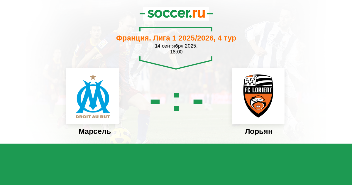 Марсель - Лорьян ! Марсель является фаворитом данного матча и после не совсем продуктивного старта в домашнем матче постарается забрать уверенную победу . Очные встречи между клубами проходят довольно результативно .