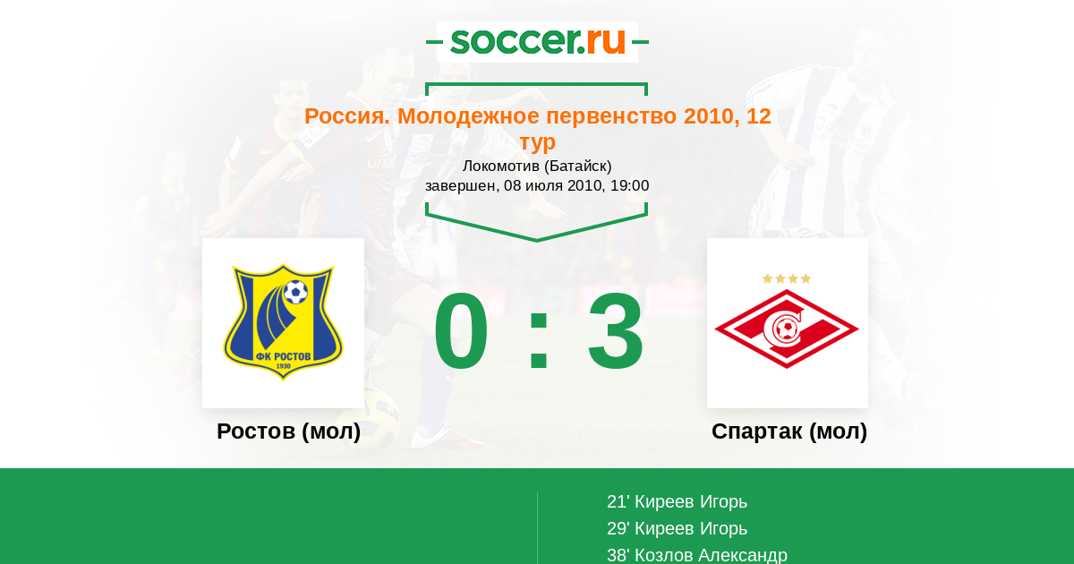 Матчи Россия. Молодежное первенство 2010