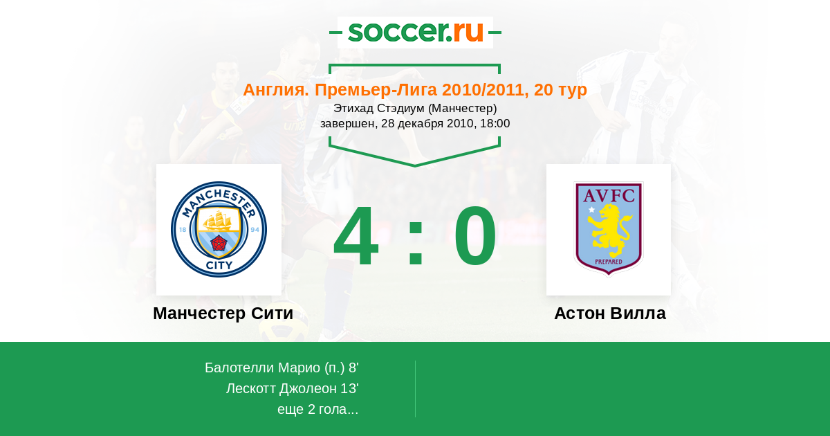 Матчи Англия. Премьер-Лига 2010/2011