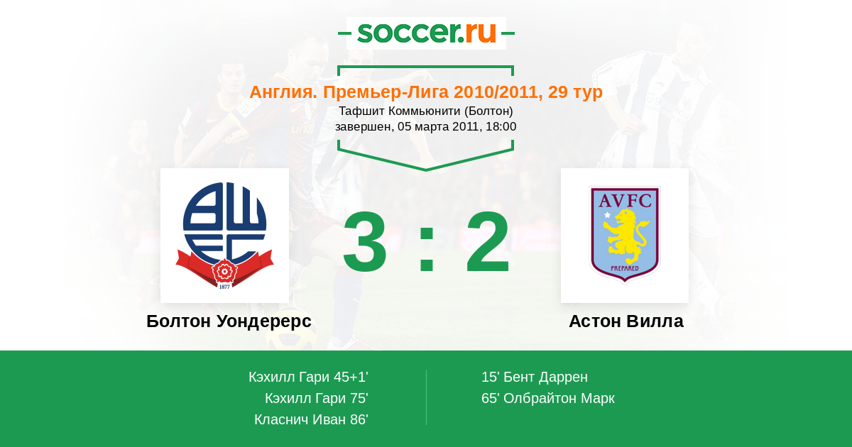 Матчи Англия. Премьер-Лига 2010/2011