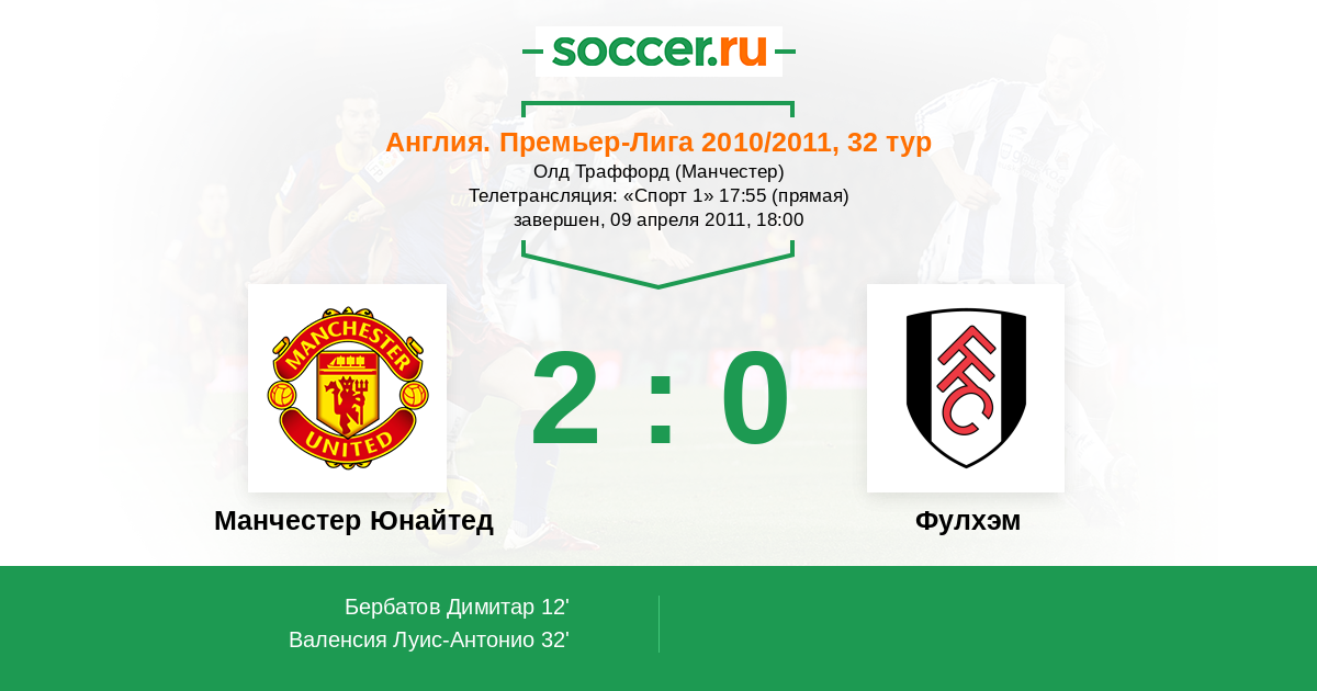 Матчи Англия. Премьер-Лига 2010/2011