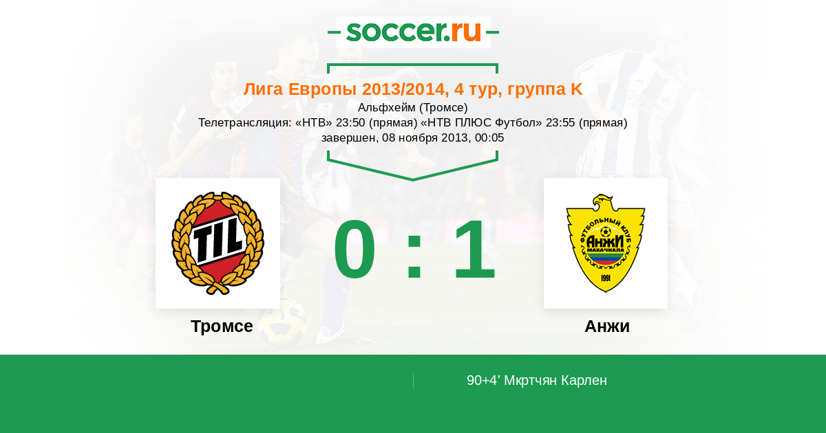 Телетрансляция: «НТВ» 23:50 (прямая) «НТВ ПЛЮС Футбол» 23:55 (прямая)