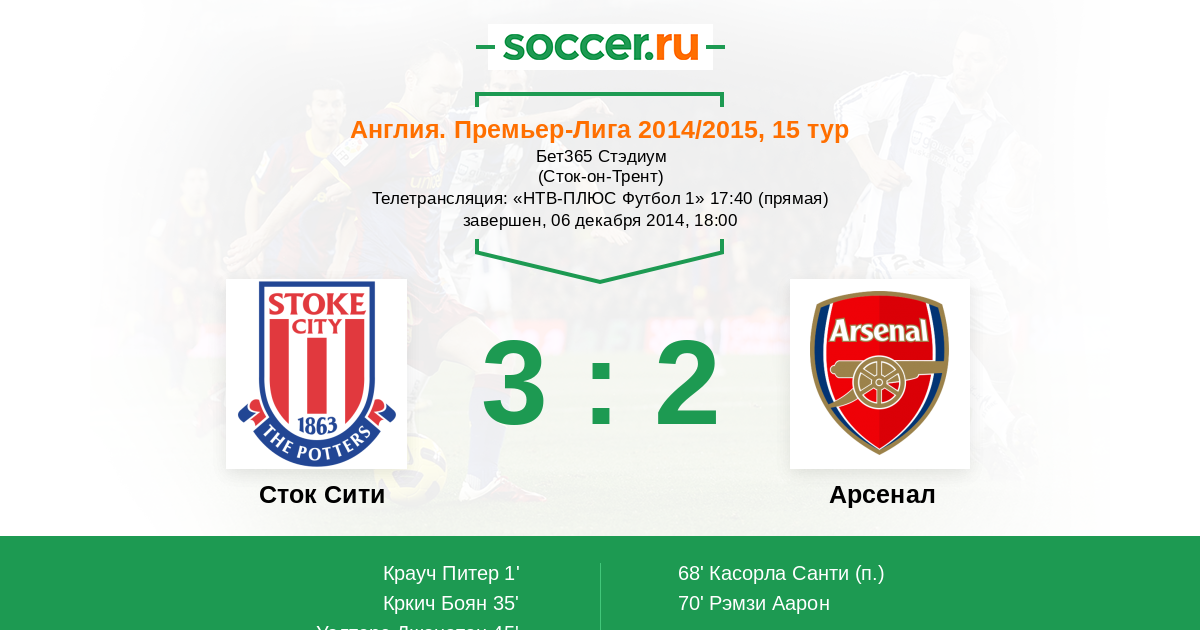 Телетрансляция: «НТВ-ПЛЮС Футбол 1» 17:40 (прямая)