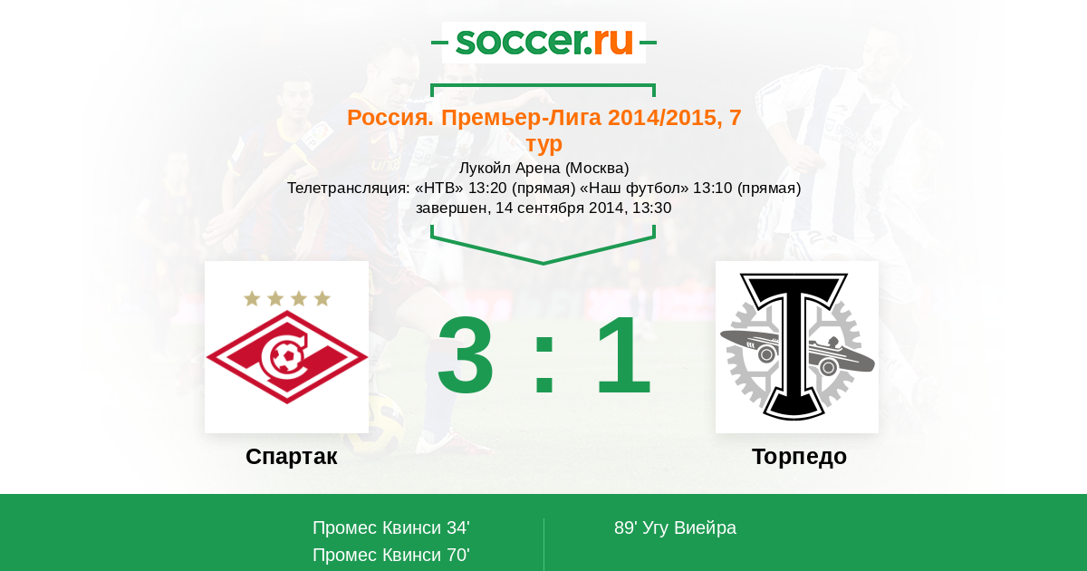 Телетрансляция: «НТВ» 13:20 (прямая) «Наш футбол» 13:10 (прямая)