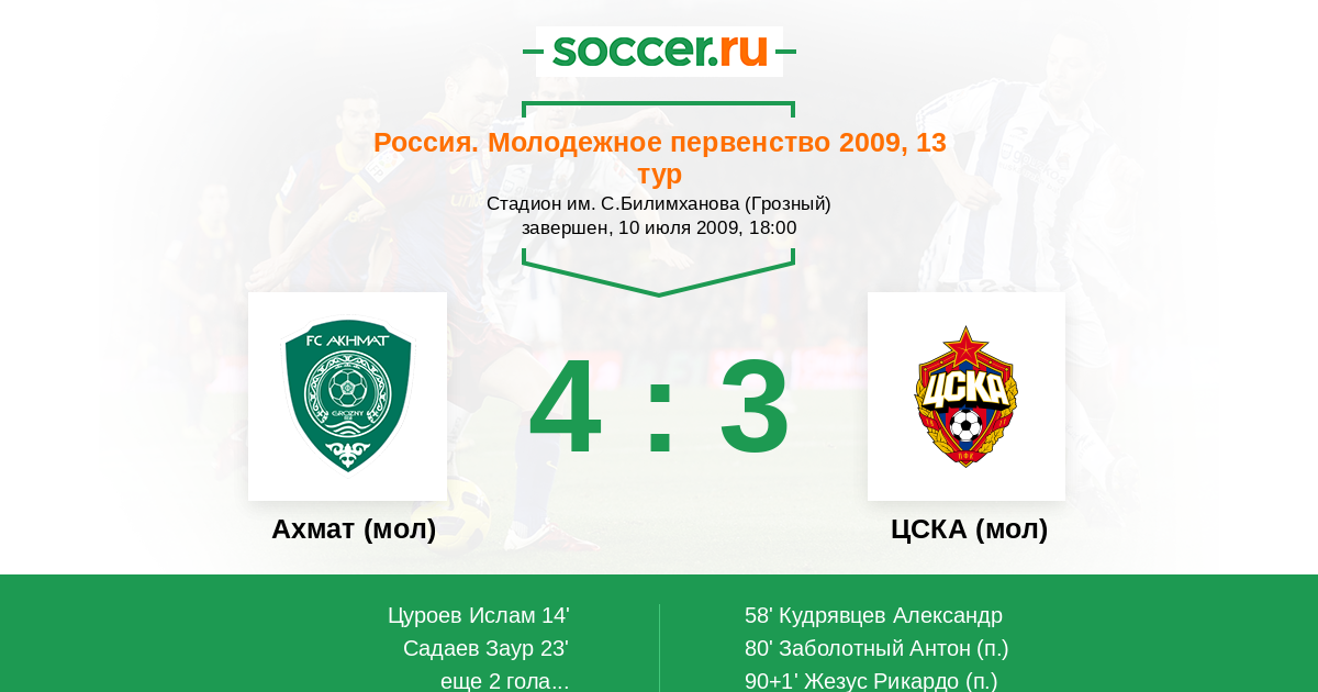 Матчи Россия. Молодежное первенство 2009