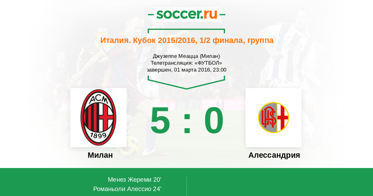 Новости матча Милан против Алессандрия