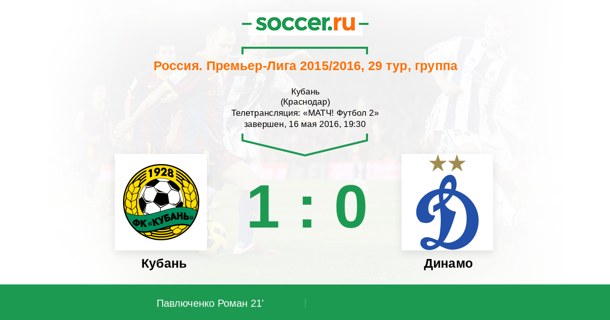 Новости матча Кубань против Динамо