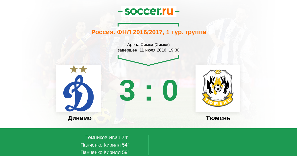 Новости матча Динамо против Тюмень