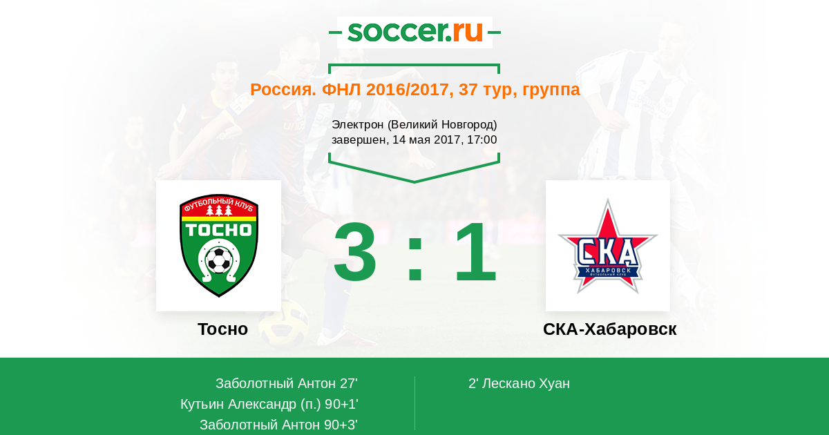 Новости матча Тосно против СКА-Хабаровск