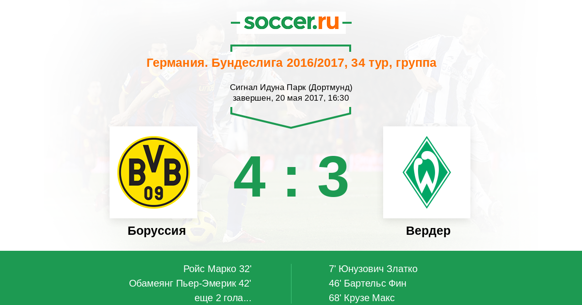 Новости матча Боруссия против Вердер