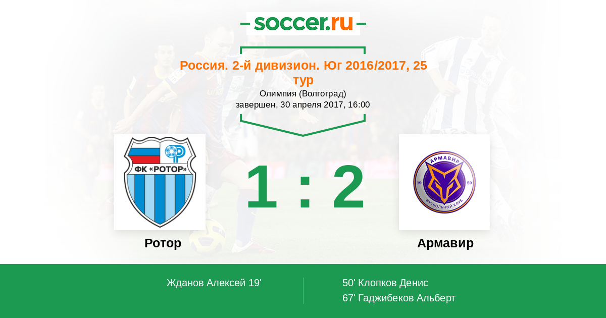 Новости матча Ротор против Армавир