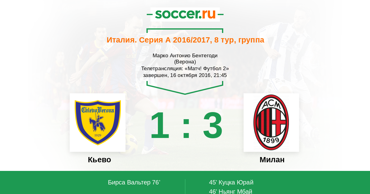 Новости матча Кьево против Милан