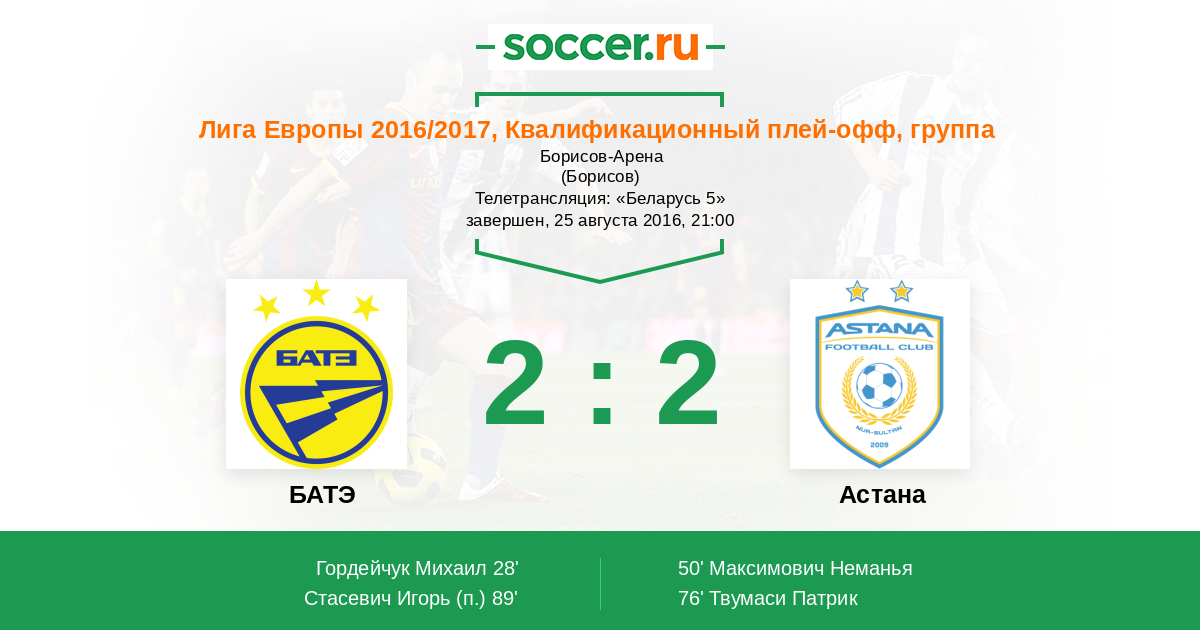 Новости матча БАТЭ против Астана