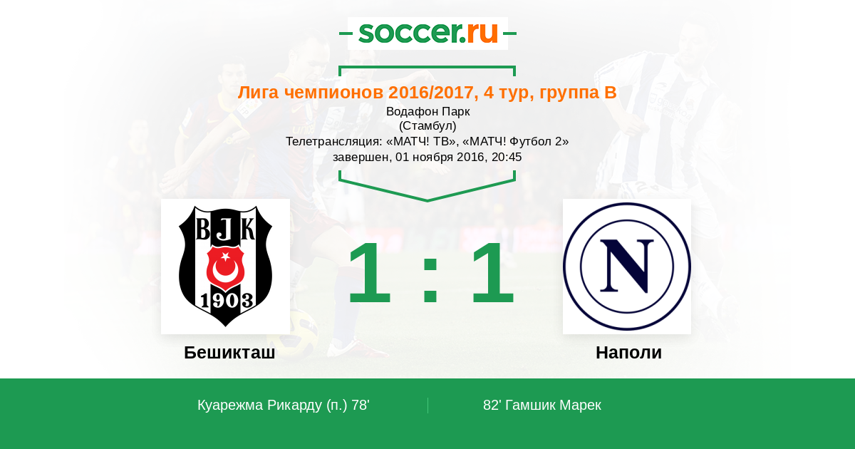 Новости матча Бешикташ против Наполи