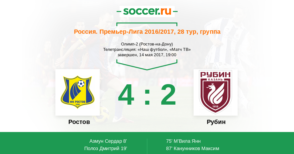 Болелам Рубина не унывать, два гола Ростову на их поле, не каждому дано!
